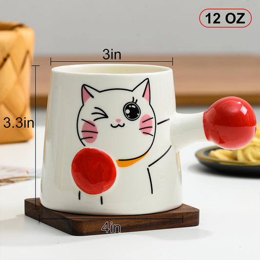 😽PARACITY Boxing Cat Cute Coffee Mug, Funny Ceramic Kitten Coffee Mug 🎁